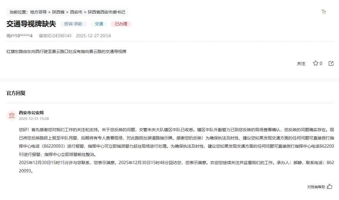 针对网友留言,西安市公安局在回复中表示,交管未央大队辖区中队外勤警力已现场查看确认,问题确实存在。